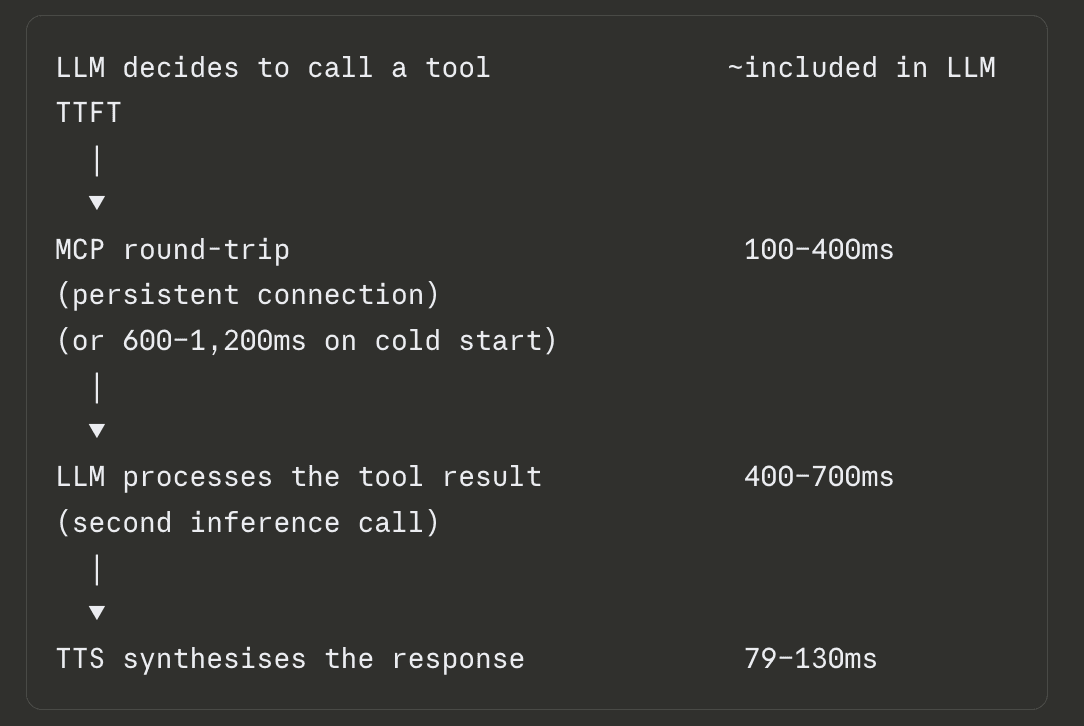 Even with persistent connections, trimmed responses, and all the other tricks in the book, tool calls still add anywhere from 600ms to 2 seconds. You can't get rid of that, but you can hide it.